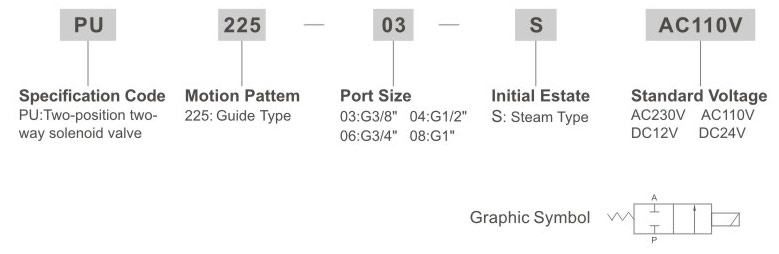 PU225 Steam Type Solenoid Valve