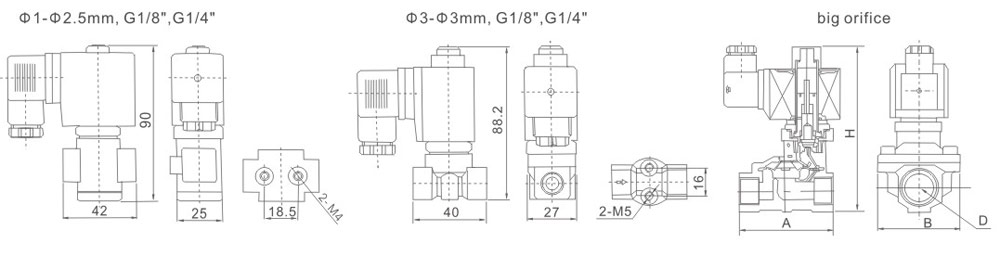 | Air、 Gas | Water、Hot water、Liquid | Light oil ≤20CST | AC 220 | DC 24V | Brass | Stainless steel | Length×Width×Height A×B×H(mm) | |||||
